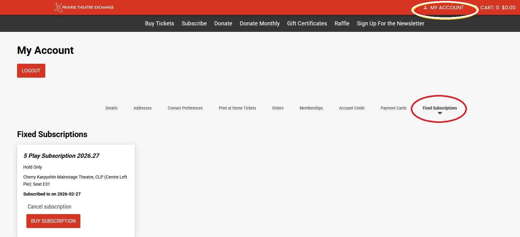 2. Once you’re logged in, you’ll be taken to the MY ACCOUNT page. The menu item you're looking for is FIXED SUBSCRIPTIONS - it's the final item on the menu in the white part of the page.